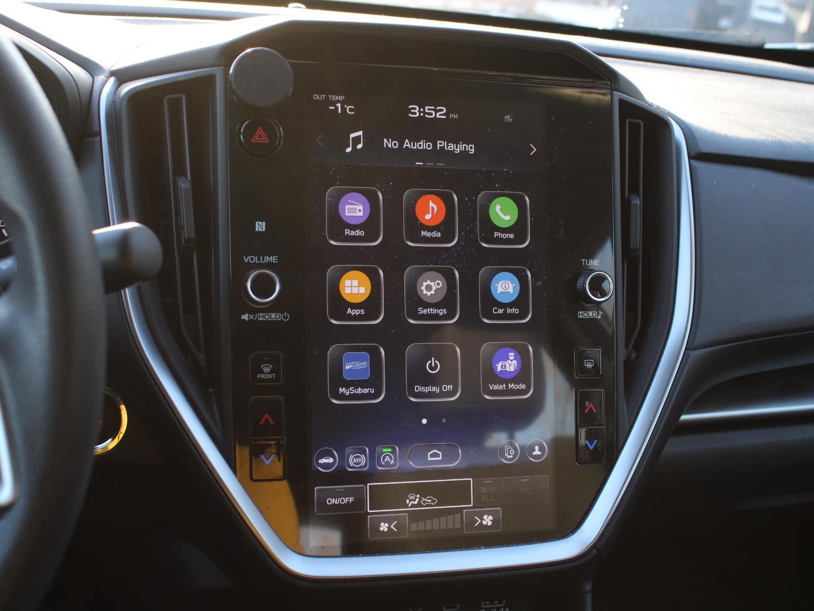 - Radio: Subaru STARLINK 11.6" Multimedia Plus Sys -inc: valet mode, AM/FM stereo, HD Radio, multi-touch gesture high resolution display screen, voice activated controls, Bluetooth® audio streaming and hands-free phone connectivity, Bluetooth® hands-free SMS text messaging connectivity, iPod control capability, rear-vision camera display, SiriusXM All Access radio (4 months free trial/subscription required after), SiriusXM Travel Link (4 months free trial/subscription required after), smartphone integration: Android Auto, Apple CarPlay, STARLINK cloud applications, 6 speakers, 3.5mm auxiliary input jack, illuminated/dual USB A and C input charge ports, roof mounted antenna and audio/satellite connected services