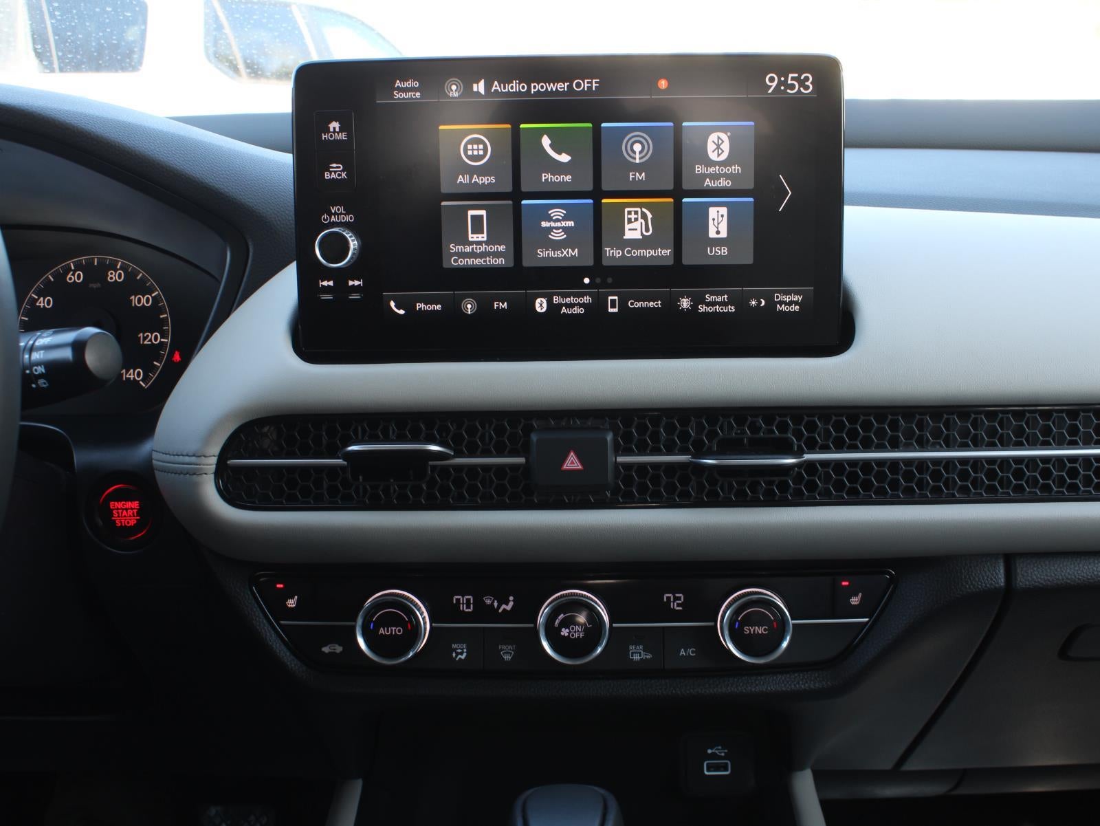 - Radio: 180-Watt Audio System w/8 Speakers -inc: 9-inch color touchscreen, wireless Apple CarPlay and Android Auto compatibility, Bluetooth® HandsFreeLink and streaming audio, 2.5-amp USB-A smartphone/audio interface port in front console, HD Radio, Qi-compatible wireless phone charger, HondaLink, SMS text message function, Radio Data System (RDS) and Speed-Sensitive Volume Compensation (SVC)
