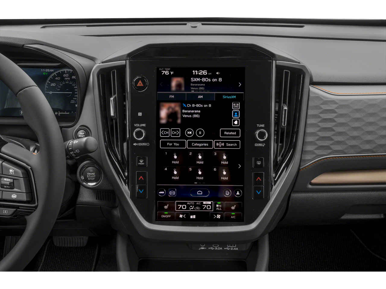 - Radio: Subaru 11.6" Multimedia Navigation System -inc: valet mode, integrated center information display, AM/FM stereo HD Radio, multi-touch gesture high resolution display screen, voice activated controls, voice activated navigation, Bluetooth® audio streaming and hands-free phone connectivity w/SMS text messaging connectivity (refer to subaru.com for cell phone compatibility), TomTom navigation software w/What3Words, iPod control capability, SiriusXM w/360L (4 months free trial/subscription required after), SiriusXM Travel Link (3 years free trial/subscription required after), SiriusXM Live Traffic (1 year free trial/subscription required after), smartphone integration for Android Auto and Apple CarPlay w/full screen view and wireless connection, USB and Over The Air (OTA) audio system update, TomTom navigation system update w/USB/Map Over The Air (MOTA) (3 years free map updates), steering wheel control switches for audio and Bluetooth®, harman/kardon speaker system w/11 speakers and 576 watt equivalent maximum output amplifier, 3.5mm auxiliary input jack and roof mounted audio and satellite antenna